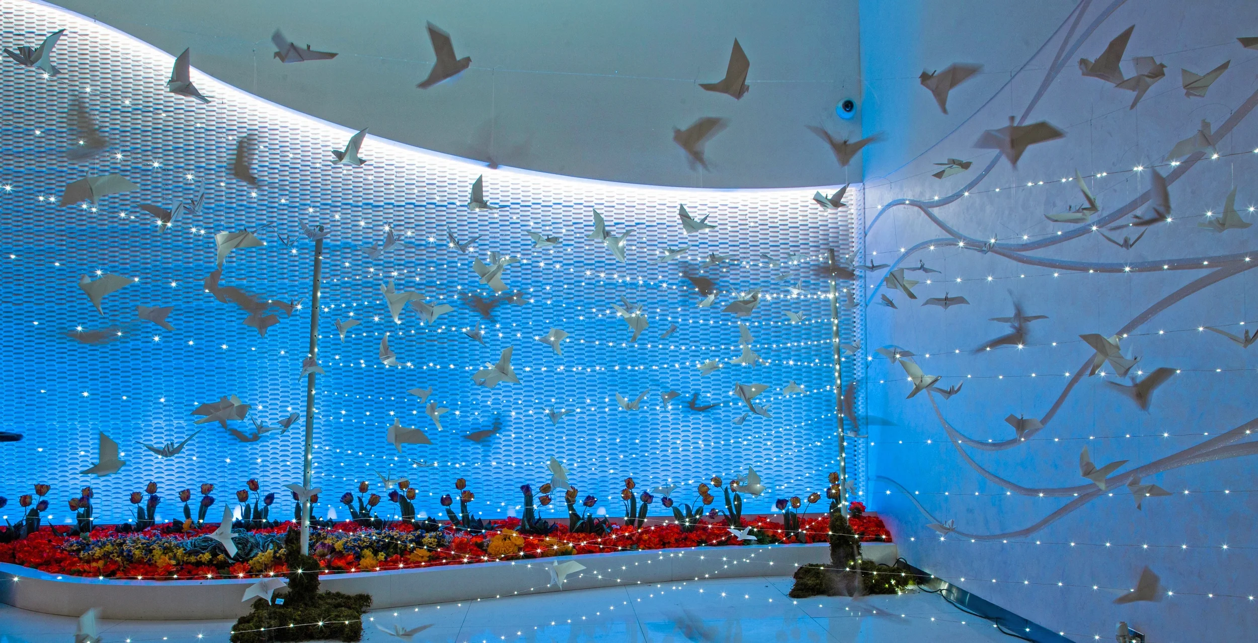 14'x13'. Steel, Wire, Moss, Paper, LED. 2016