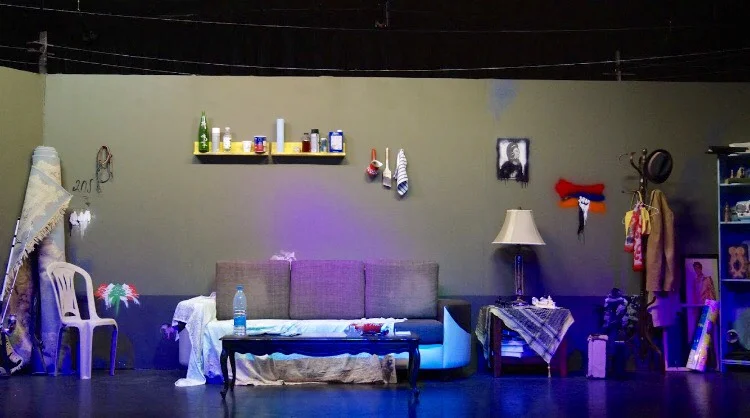 The set (stage and art) created for the Pink Elephant play. Staged at the ARTN Theatre in Glendale, CA. 2017